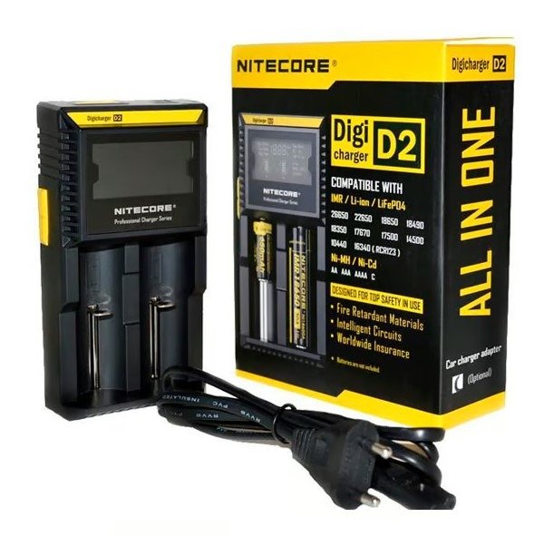 El cargador de baterías Nitecore D2 es un cargador inteligente con dos ranuras independientes controladas por microcomputadora. Permite cargar hasta dos baterías Simultáneamente.